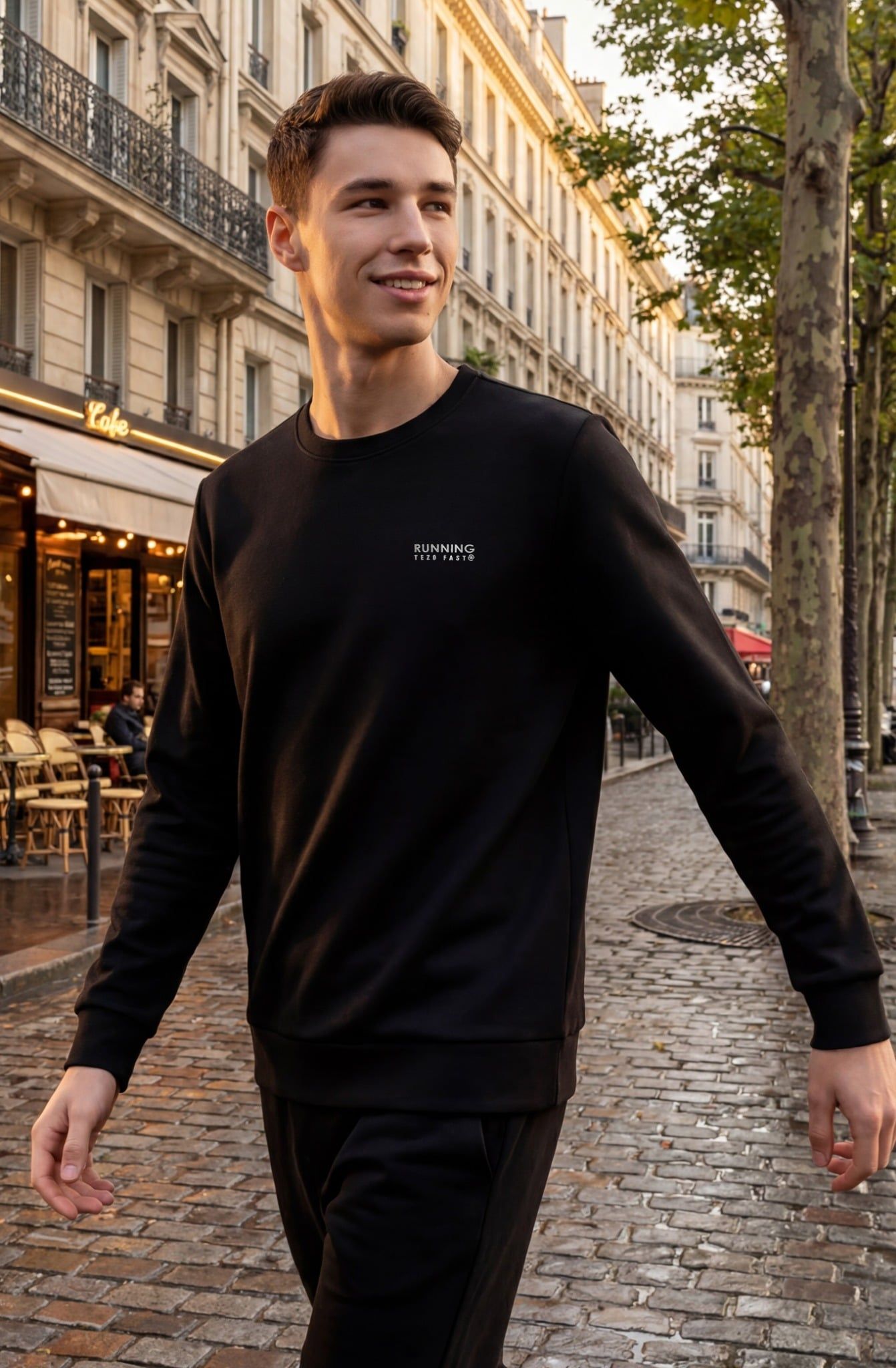 - Ngực áo in họa tiết chữ Running Tezo Fast cao cấp, tinh tế