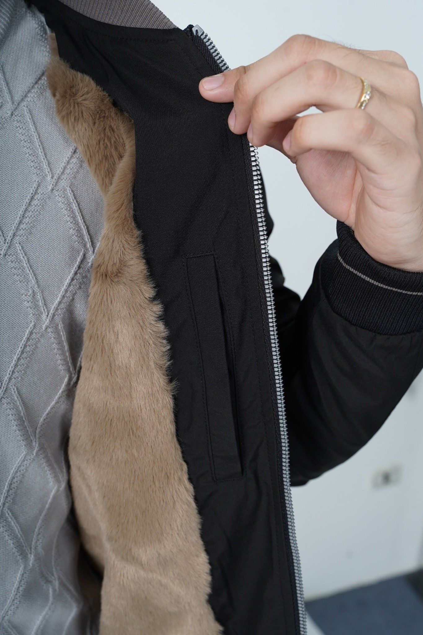 Áo gió nam cổ bomber lót lông Tezo - 25AGBT040