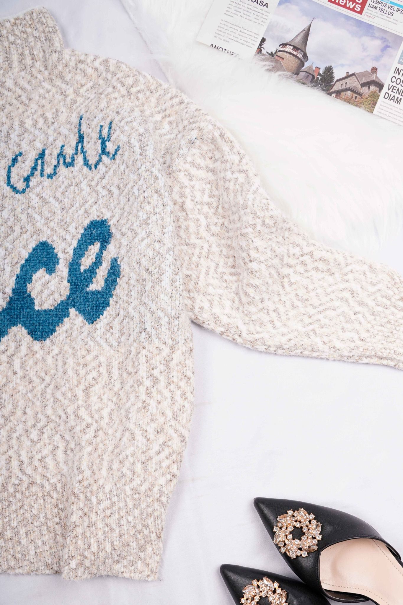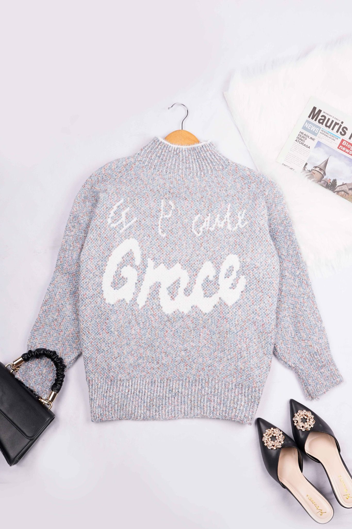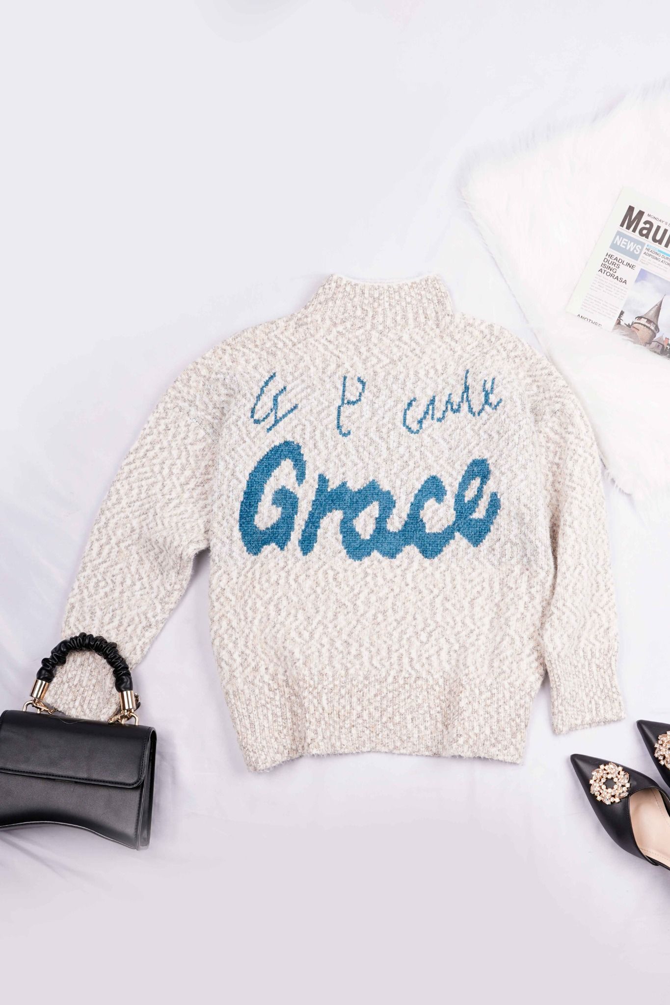 Áo len nữ cổ 3 phân chữ Grace, freesize Tezo - 2111AL3T01