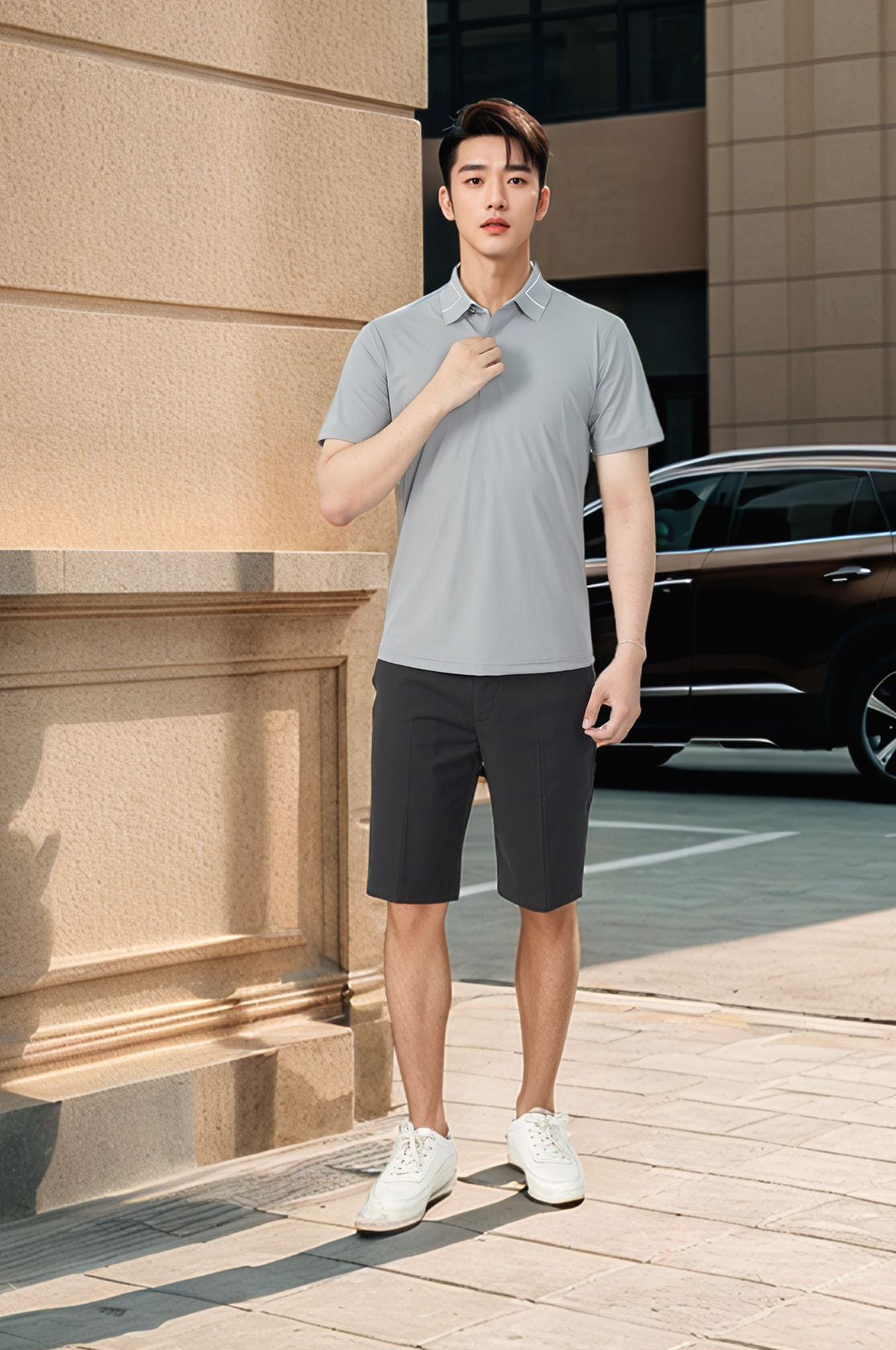 - Thiết kế khác biệt so với áo polo truyền thống là phần cổ áo, tay áo không làm bo chun giúp thoáng hơn, dễ vận động hơn, đặc biệt phù hợp cho các chàng năng động