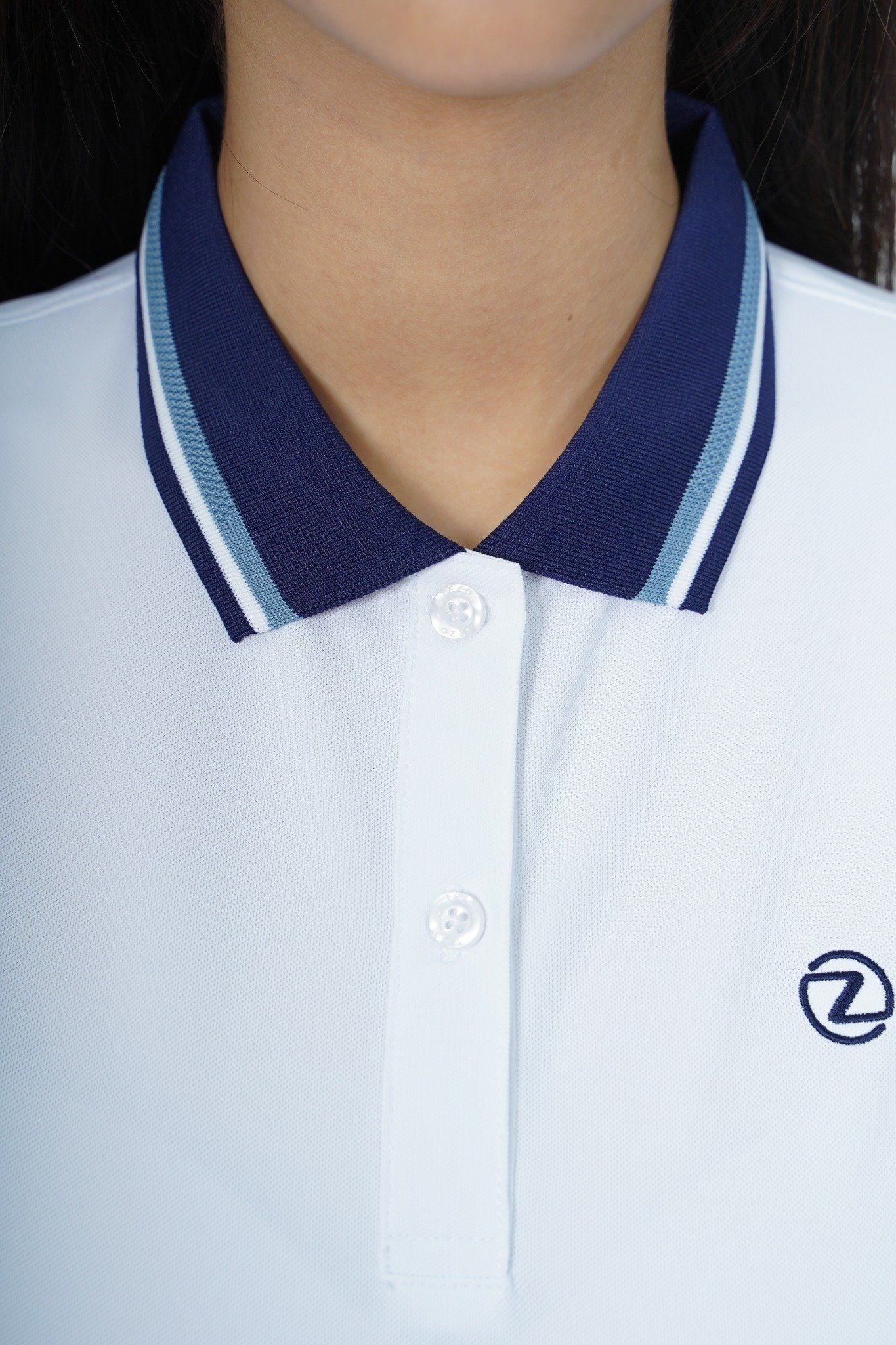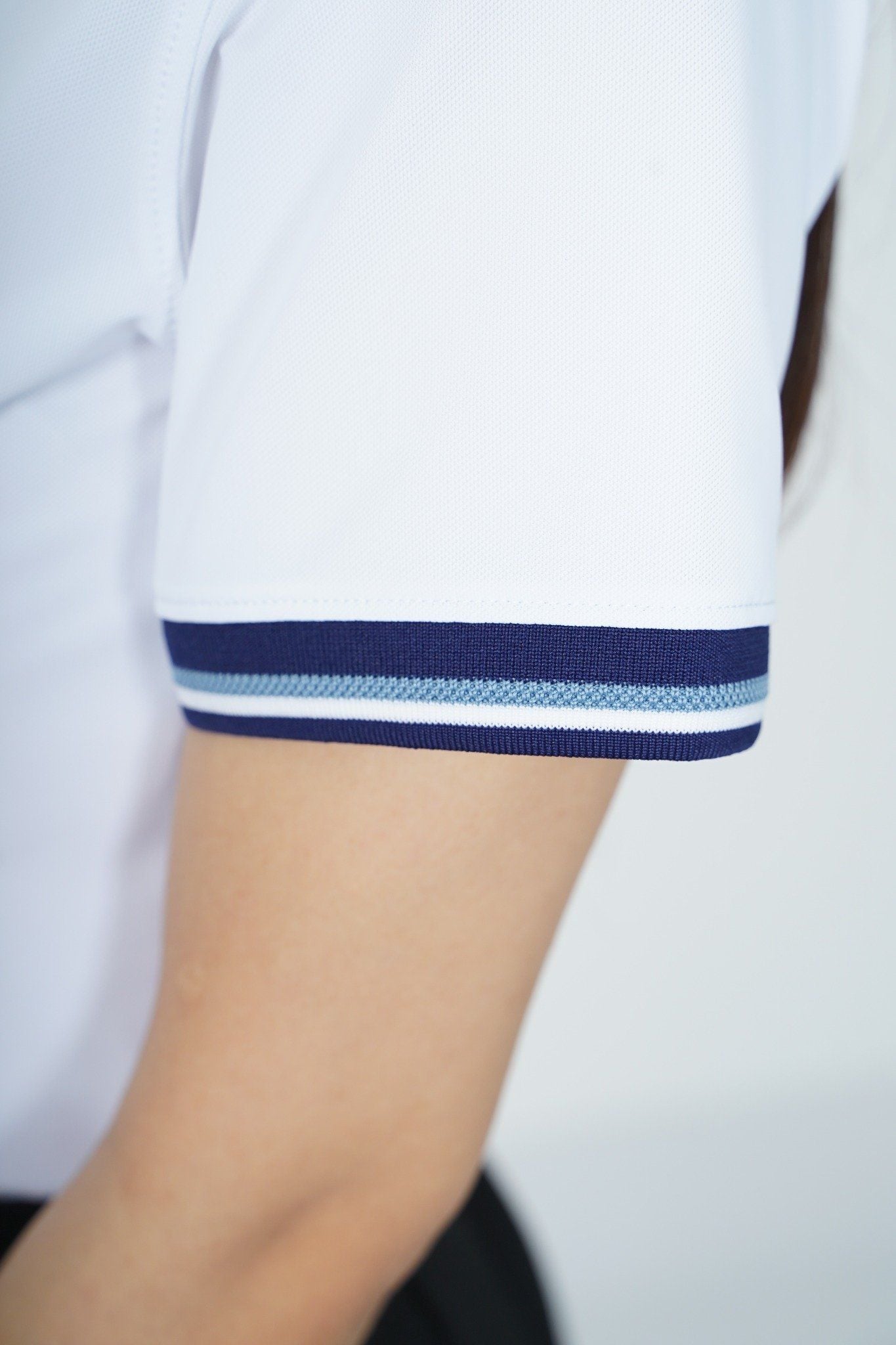 - Thiết kế tay ngắn, cổ cao với 2 hàng nút lịch sự.Phần cài cổ 2 cúc dập logo hãng trẻ trung nhưng vẫn toát lên vẻ lịch sự.