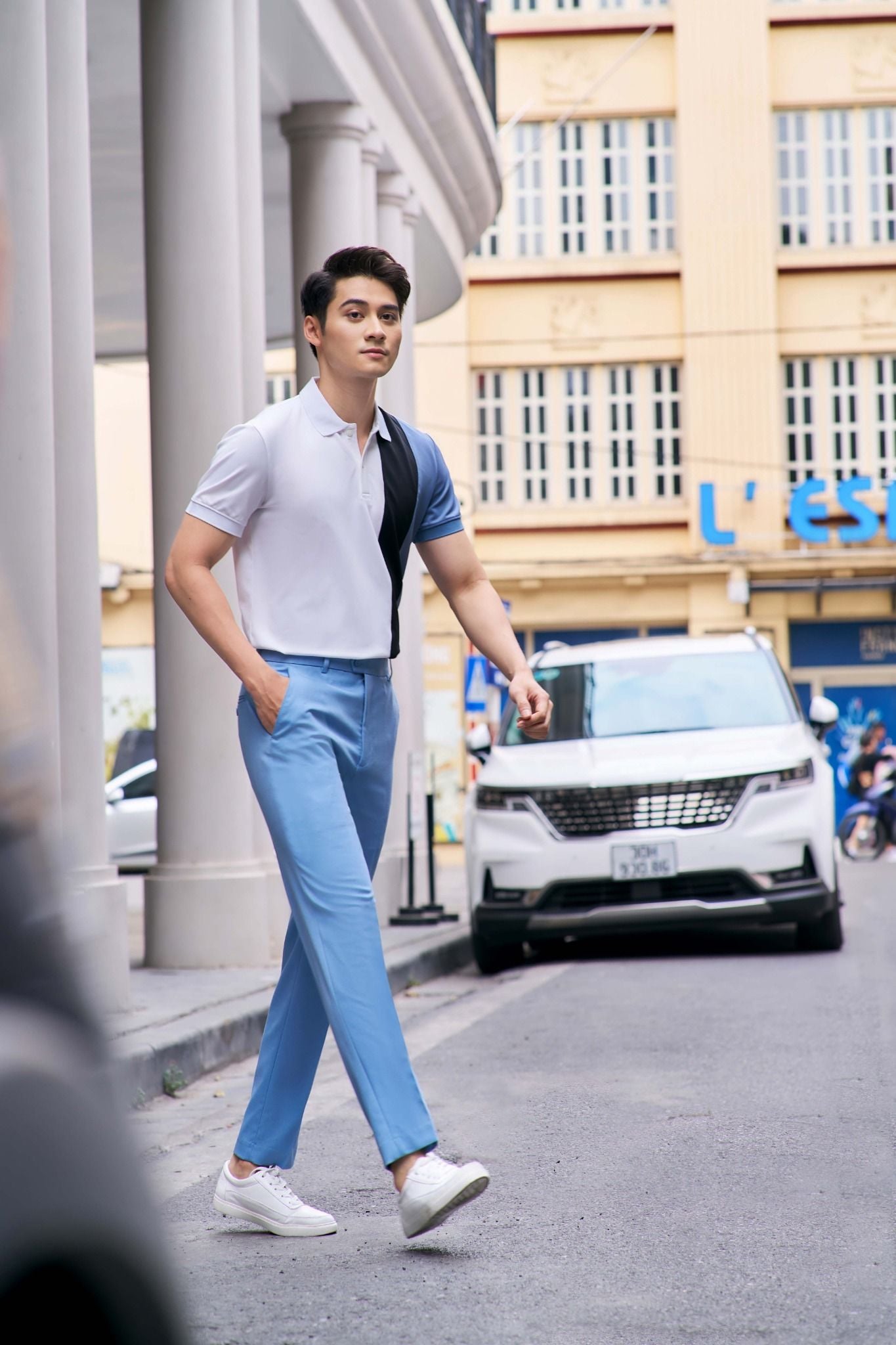 - Quần kaki ( Đen/ Trắng/ Xanh tím than) + Giày lười/ Giày thể thao.
