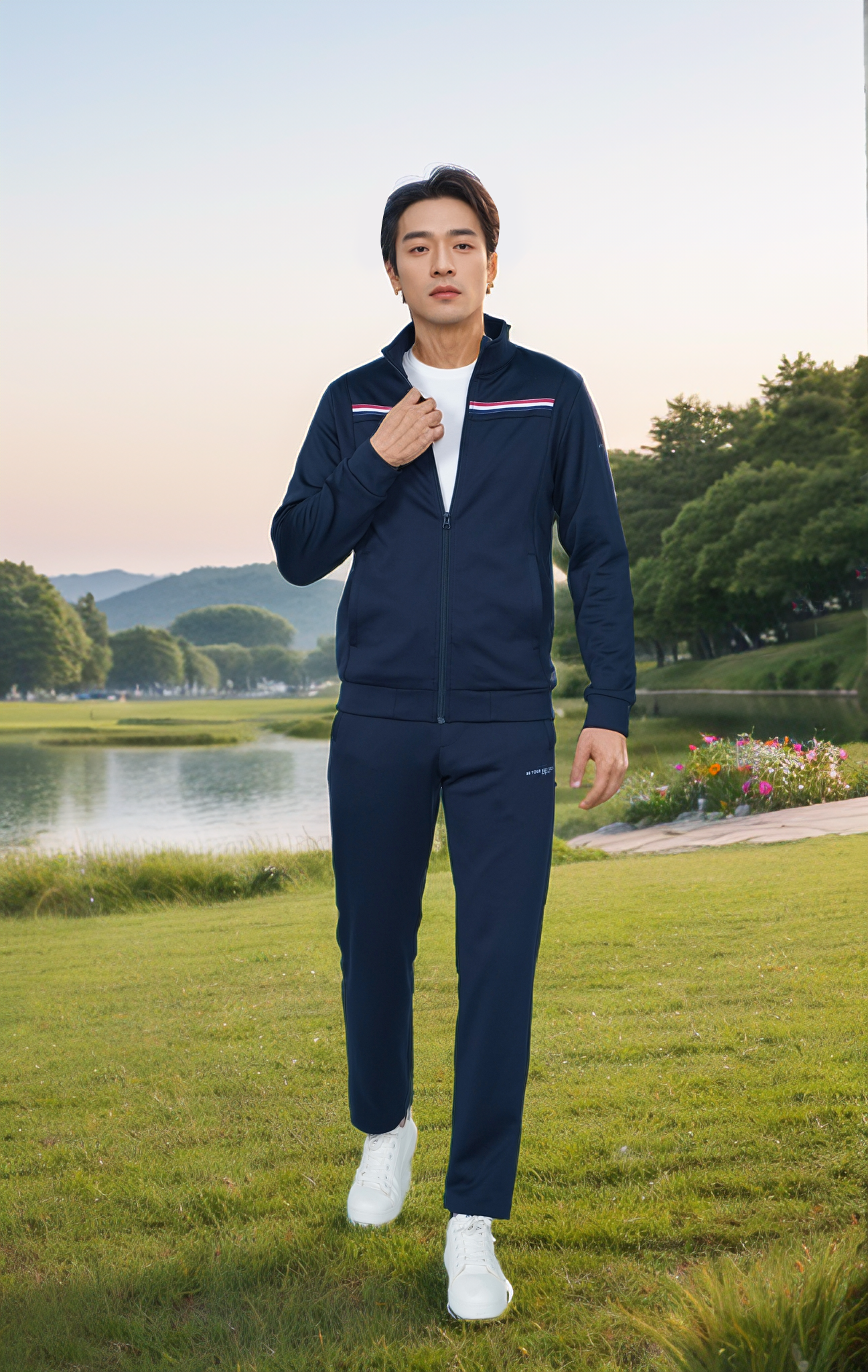Bộ áo nỉ nam thể thao kéo khóa thêu logo Tezo 24ANKT013 - Quần nỉ nam thể thao kéo khóa thêu logo Tezo 24QNKT013
