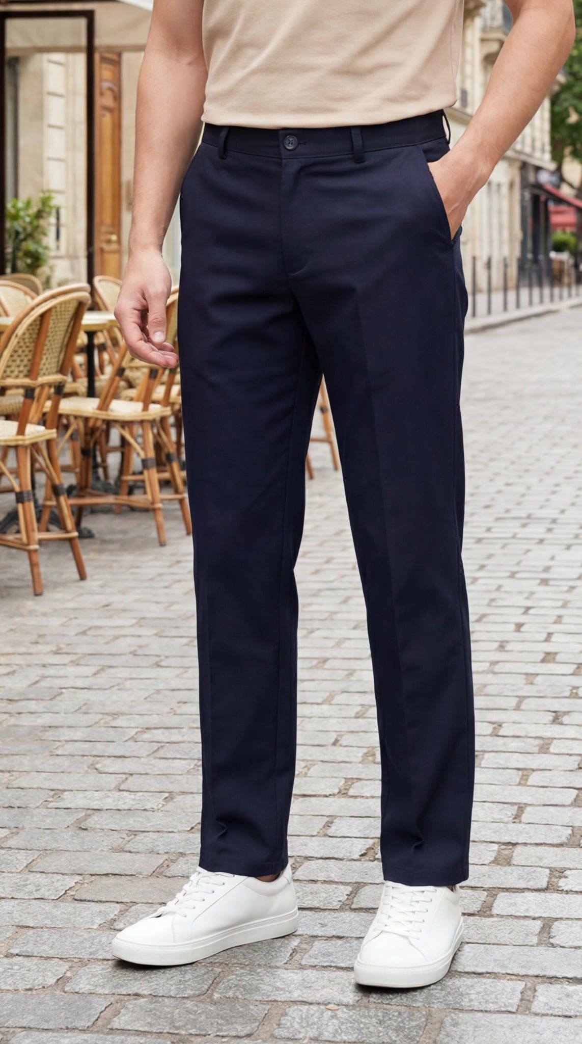 - Quần kaki có thiết kế form Regular fit: là một kiểu quần được thiết kế suông vừa, thoải mái nhưng vẫn tôn dáng người mặc